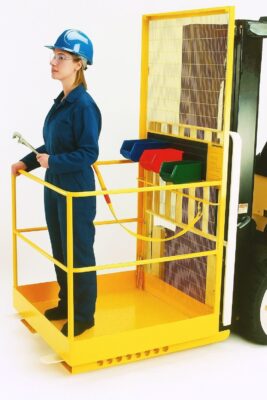 -Nuestras canastillas de seguridad están diseñadas para usarse con cualquier montacargas contrabalanceado o montacargas de reach o doble reach.