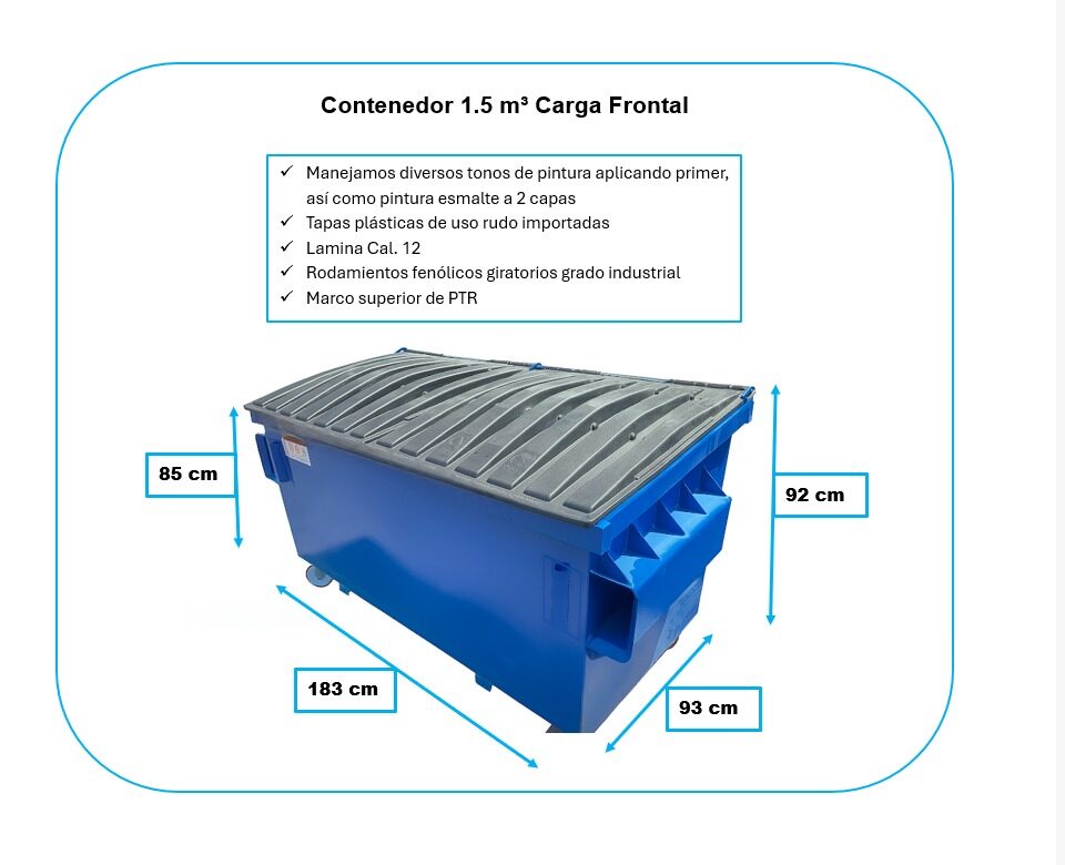 Contenedor carga frontal metálico de 1.5 metros cúbicos
