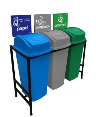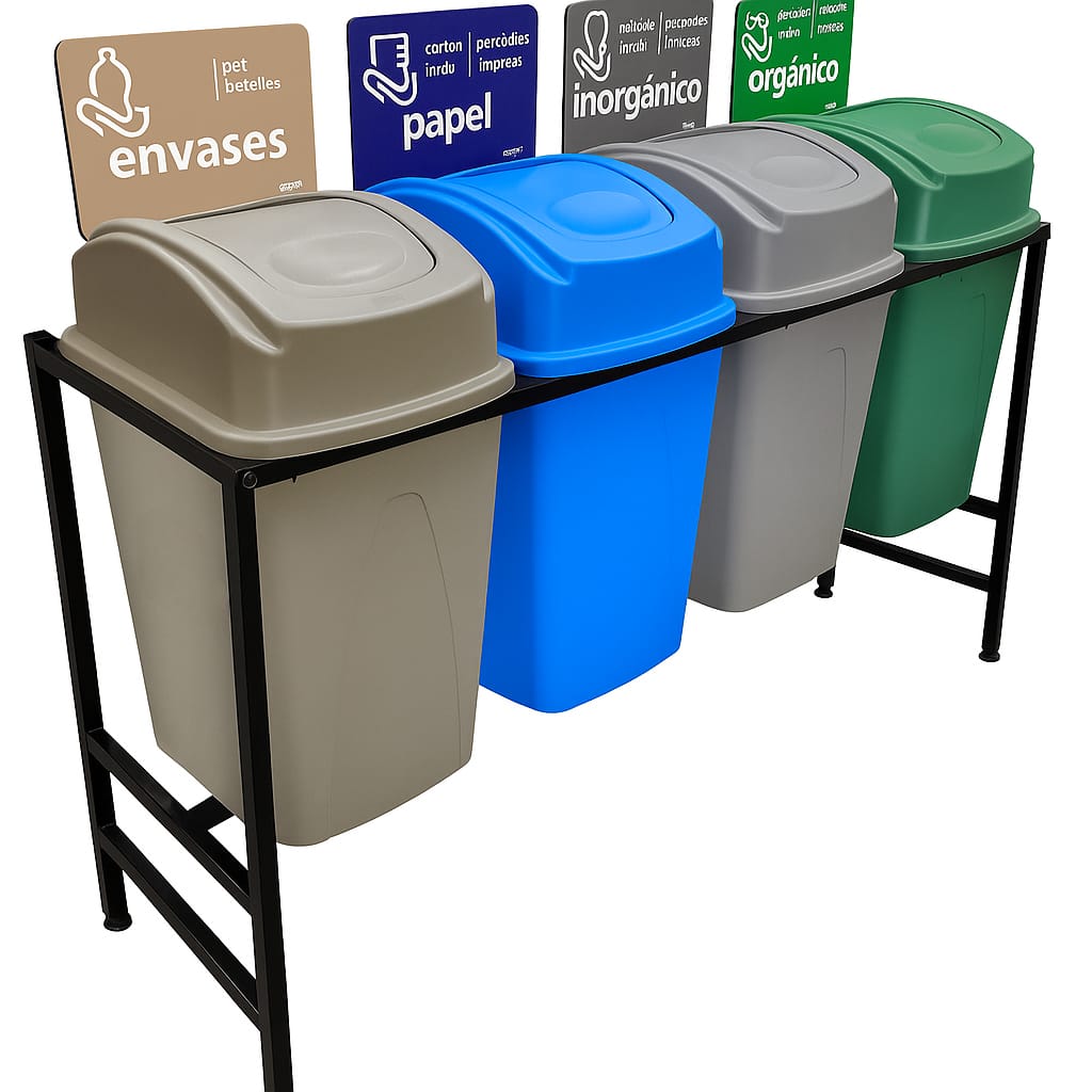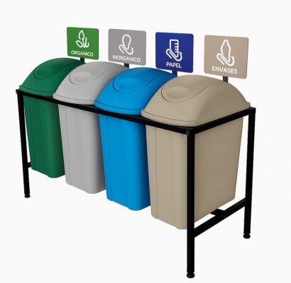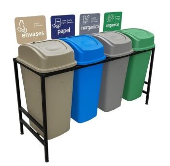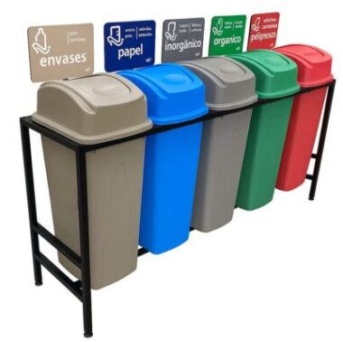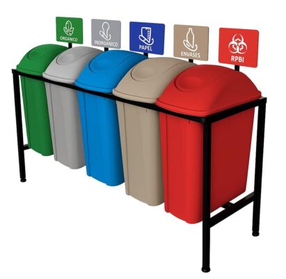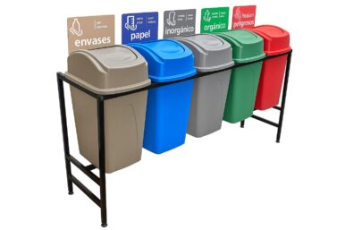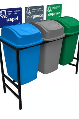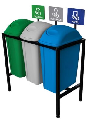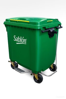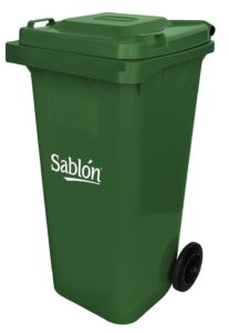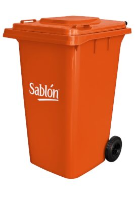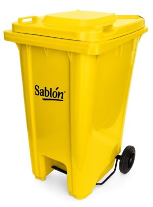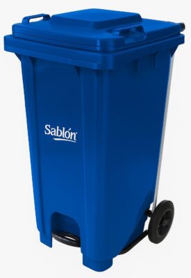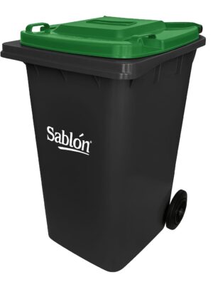 El Carrito Multifuncional Sablón con Bolsa y Plataforma incluye bolsa de 75 L, tapa para residuos, ruedas resistentes y espacio frontal para cubeta o contenedor redondo.